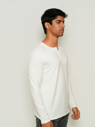 Structure Fit (P/D) - Henley Neck Long Sleeve - Classic White